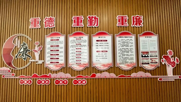 山重財(cái)務(wù)廉韻財(cái)司文化陣地。以“山之重 清廉風(fēng)”為主題,構(gòu)建三級(jí)廉潔文化陣地,以廉潔文化墻為主陣地,深度融入“三重”廉潔文化核心理念,立德于行、踐勤于身、鑄廉于心;以黨員清風(fēng)角為分陣地,定期展示清廉建設(shè)動(dòng)態(tài)信息,望廉而喜、見廉思齊、擇廉而從;以員工活動(dòng)空間為微陣地,常態(tài)化開展紀(jì)法普及與廉潔提醒,舉頭學(xué)廉、低頭思廉、帶頭踐廉。