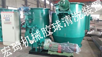 膠球清洗裝置還可以實(shí)現(xiàn)自動(dòng)化運(yùn)行,主要靠PLC模塊自動(dòng)化控制,電動(dòng)二次濾網(wǎng)在進(jìn)水口配有差壓變送器。當(dāng)電動(dòng)二次濾網(wǎng)網(wǎng)面通流面積減少時(shí),達(dá)到設(shè)計(jì)差壓值時(shí),差壓變送器將信號(hào)傳送給PLC,PLC模塊指令啟動(dòng)電動(dòng)二次濾網(wǎng)傳動(dòng)機(jī)構(gòu),同時(shí)打開電動(dòng)排污閥進(jìn)行排污。當(dāng)差壓值恢復(fù)時(shí),差壓變送器將信號(hào)傳送給PLC模塊,PLC模塊指令停止電動(dòng)二次濾網(wǎng)旋轉(zhuǎn),關(guān)閉電動(dòng)排污閥。PLC同時(shí)配有時(shí)間實(shí)施計(jì)劃,膠球清洗投用可設(shè)置二級(jí)時(shí)間保護(hù),時(shí)間設(shè)計(jì)范圍可以設(shè)置10-999小時(shí)自動(dòng)投用一次。投用時(shí)間可設(shè)置為15-30分鐘,投用時(shí)間設(shè)置:PLC指令打開裝球室前置電動(dòng)球閥,同時(shí)將信號(hào)傳送給膠球輸送泵,啟動(dòng)膠球輸送泵。同時(shí)打開循環(huán)水進(jìn)水管道上電動(dòng)投球閥,當(dāng)正常運(yùn)行后PLC指令打開裝球室出口電動(dòng)球閥,循環(huán)水管道回水管道上裝有收球閥,PLC設(shè)置時(shí)間清洗為15-30分鐘后。PLC指令關(guān)閉裝球室的電動(dòng)閥門,PLC再指令關(guān)閉電動(dòng)投球閥門,再指令關(guān)閉收球電動(dòng)閥門、其次PLC指令停止膠球泵。