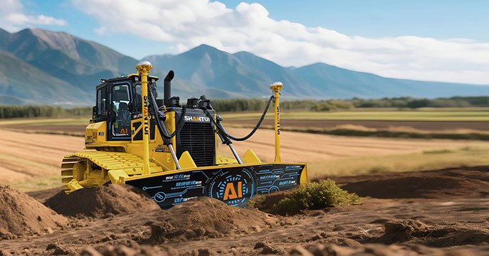 無人機掃描測繪形成三維可視化數(shù)字化工地;數(shù)字化工地現(xiàn)狀和施工目標平臺化比對,結(jié)合工期、現(xiàn)有設(shè)備明細等信息,自動生成施工方案建議和設(shè)備配置,并可根據(jù)數(shù)字化工地現(xiàn)狀,對設(shè)備運行路徑、設(shè)備土方施工等方案在系統(tǒng)中進行模擬施工; 山推智能施工服務(wù)平臺接入無人駕駛推土機、無人駕駛壓路機、智能施工攤鋪機、自動找平平地機等智能化設(shè)備。